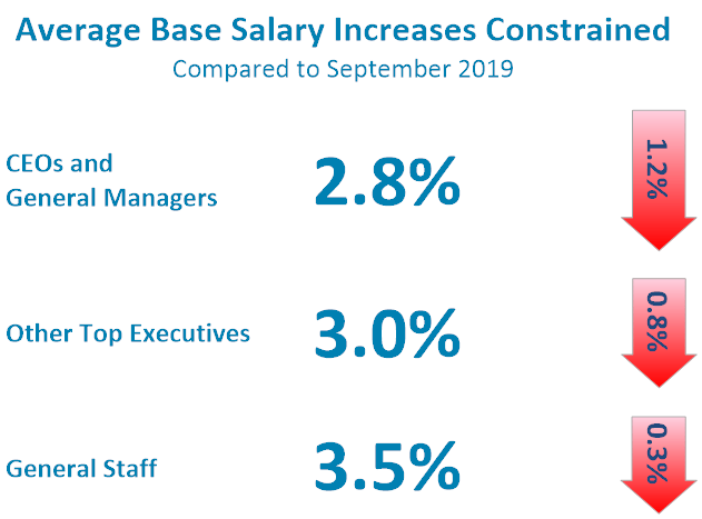 The combined impact of these is that while there has been a slight reduction in the average increase in Base Salary for General Staff, that reduction is significantly less than that identified for CEOs & General Managers and for other Top Executives.